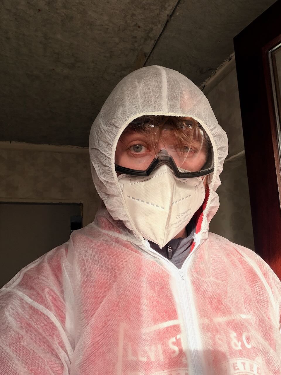 Daarnaast zijn er ook een aantal elementen die de afbraak een stuk eenvoudiger maken. Zo is er een kamer waar de isolatie meteen zichtbaar is en dus vlot verwijderd kan worden. De vinylvloer bleek niet vastgelijmd en kon gewoon opgerold worden. Zelfs het behang liet zich zonder veel moeite verwijderen.
